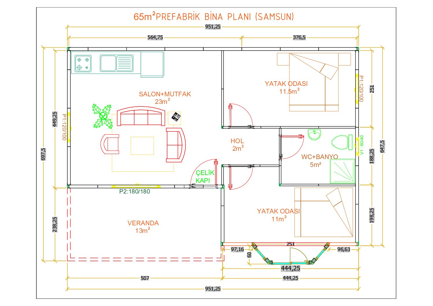 - Kaplama: 0.50 mm Boyalı Trapez Sac, 0.70 mm Boyalı Kremetal Sac, Shingle (Opsiyonel)