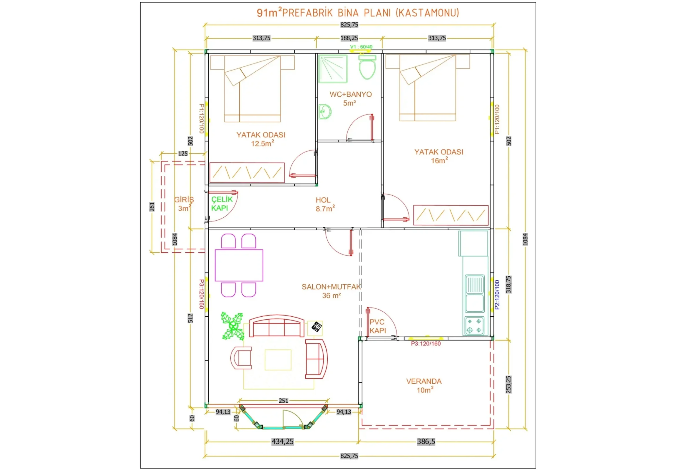 91 m2 Tek Katlı Prefabrik Ev
